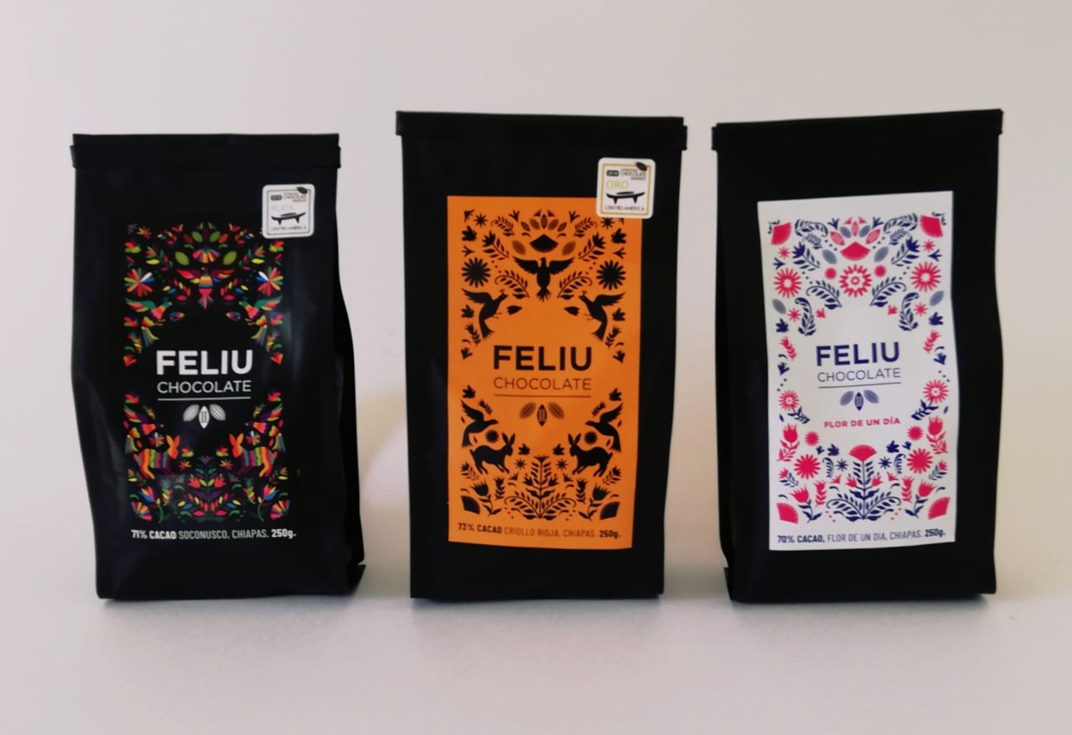 A diferencia de las tablillas de textura rústica, Feliu presenta su chocolate para beber en forma de lunetas o pastillas que se disuelven fácilmente en leche o agua. Son prácticamente el mismo chocolate que usa para las tabletas que —cabe decirlo— son de los mejores chocolates de México. Tiene nueve presentaciones en bolsas. Los puedes conseguir a través de su tienda en línea. Si te animas a pedirlo, agrega de una vez algunas de sus tabletas premiadas.