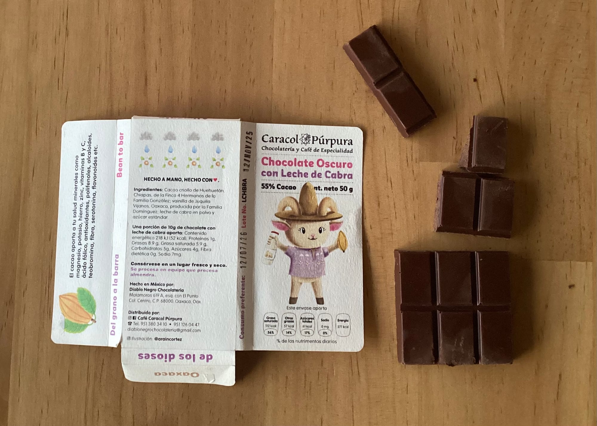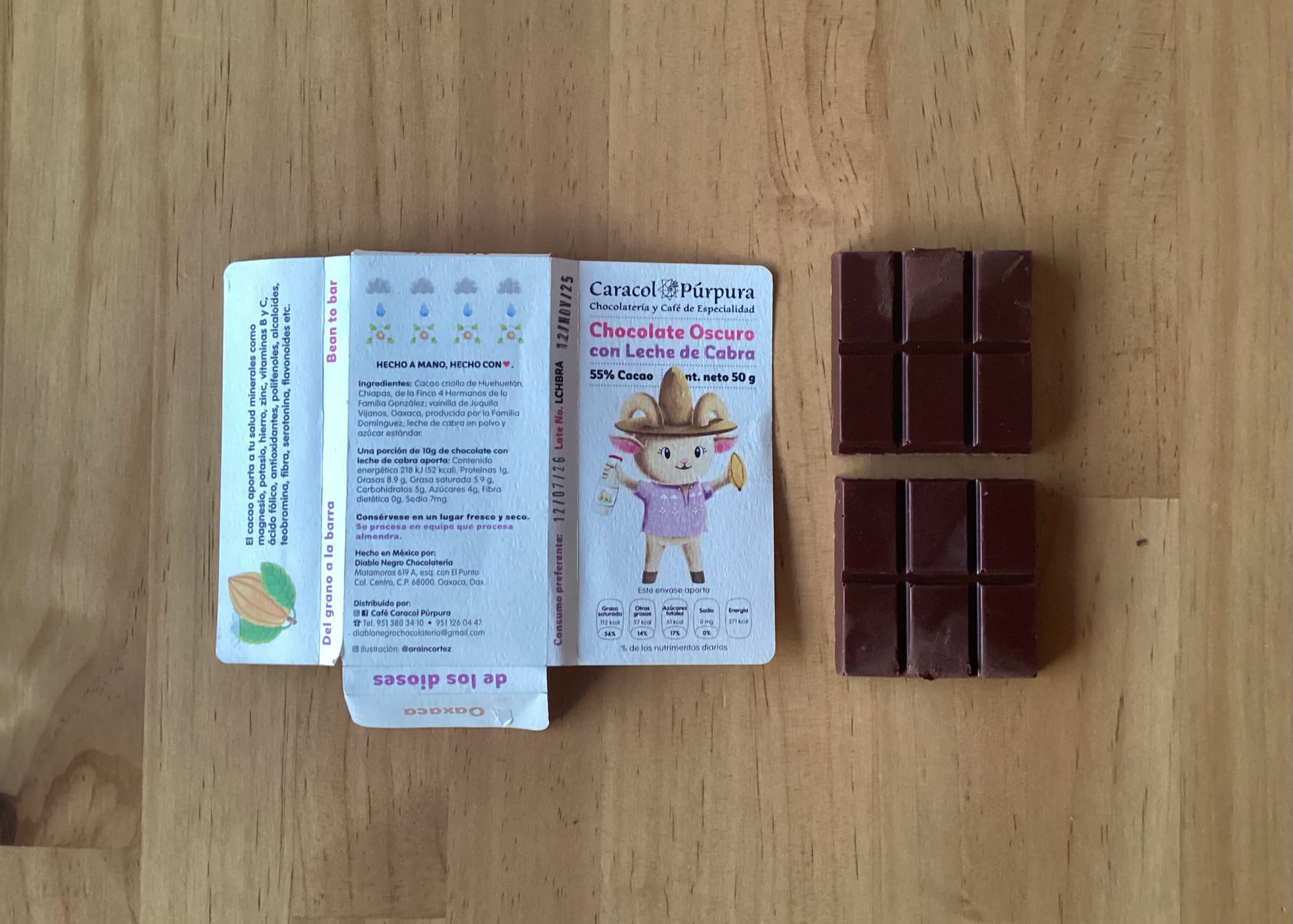 Mi curiosidad con este tipo de chocolates quedó satisfecha, y no me decepcionó. Quizá debería probar más y compartirlo con más gente. Es un chocolate con “personalidad”, de esos que no se encuentran en el Oxxo. Por eso, si algún día te topas a la niña cabra, no la dejes ir. Tu salud mental y tu paladar te lo van a agradecer.