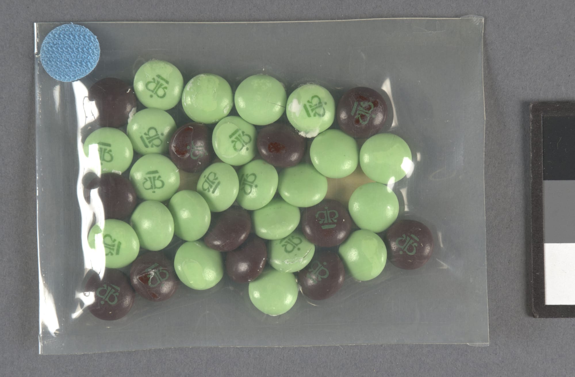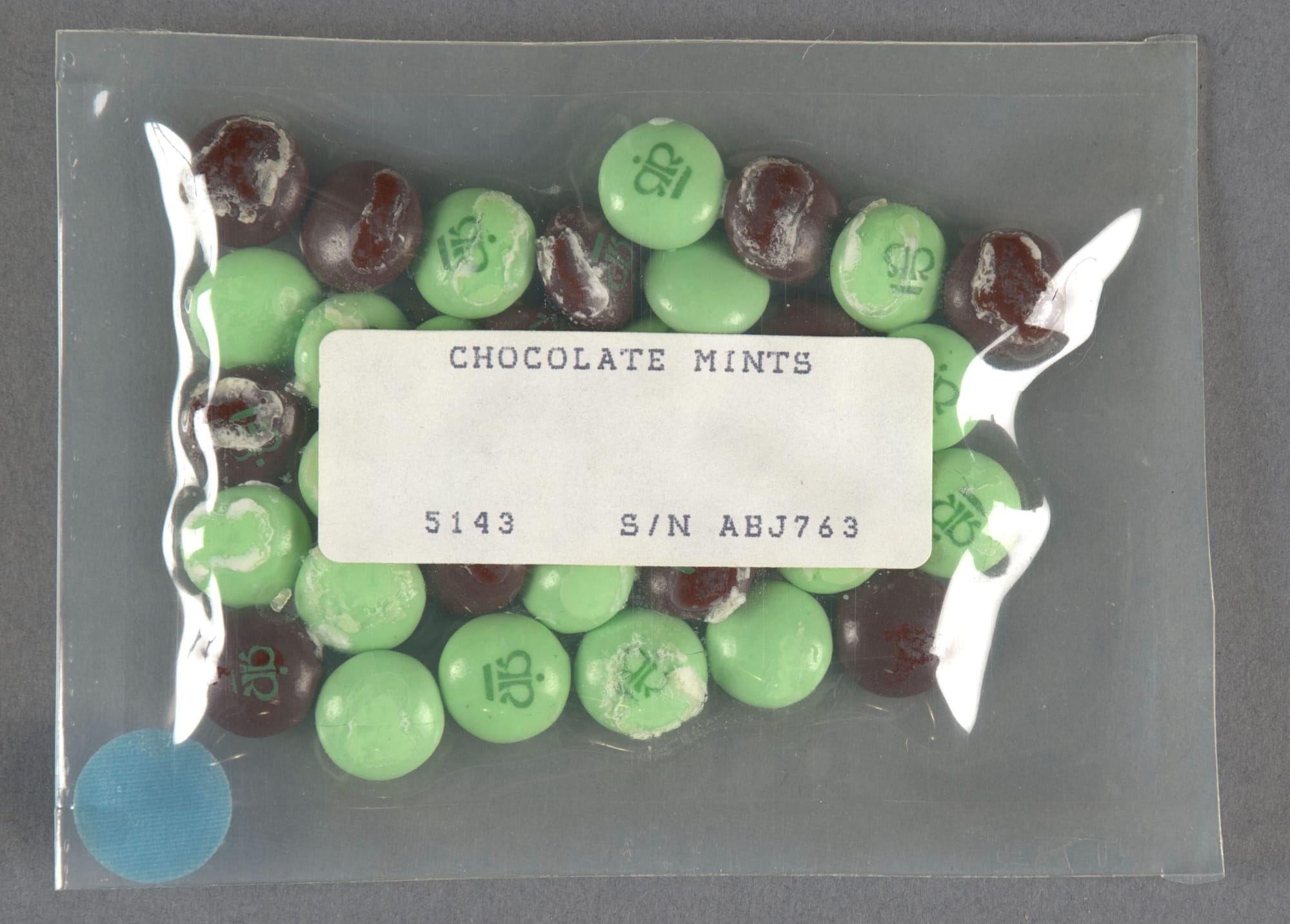 La NASA donó este paquete de dulces de chocolate con sabor a menta 'M&M’s Royal' al Museo en 1985 para su exhibición en una muestra de comida espacial. Aunque este paquete de dulces en particular no voló al espacio, es representativo de los refrigerios que han estado disponibles en el Transbordador y en naves espaciales anteriores