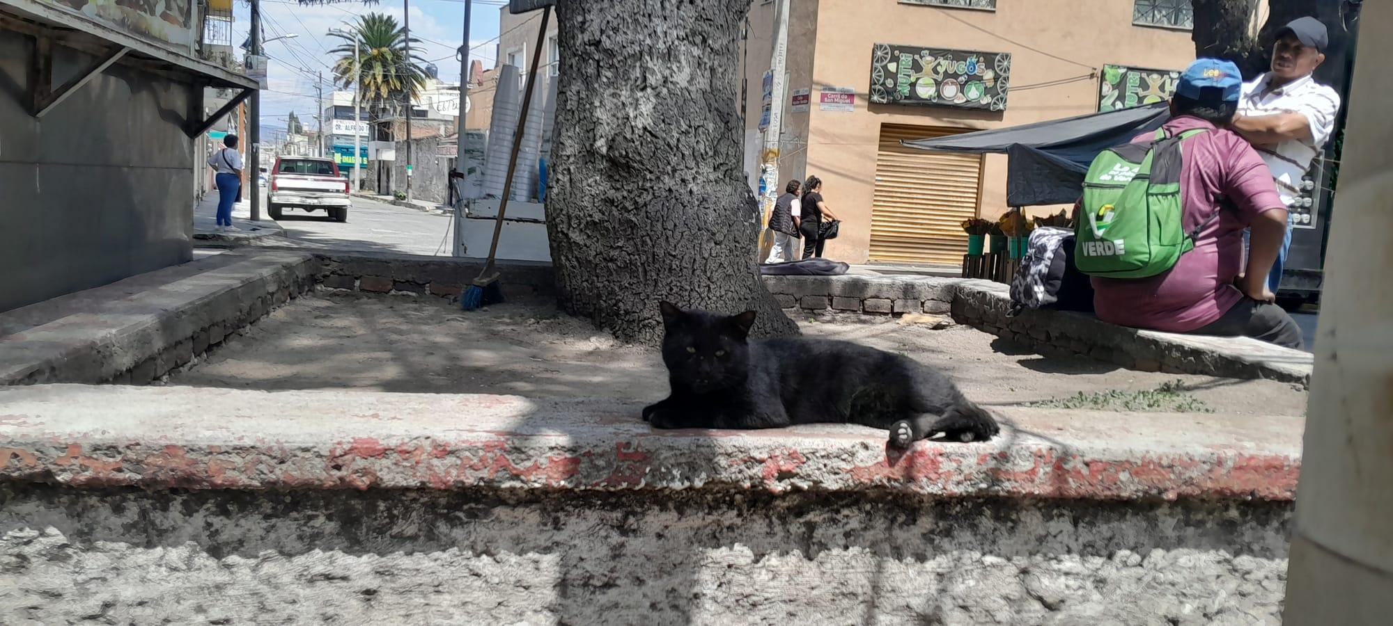 Estuvimos el fin de semana en San Martín Texmelucan, Puebla, una ciudad que cada vez le sube a su nivel de ruido provocado por las motocicletas. El domingo por la mañana dimos la vuelta por el centro y vimos este gato negro que descansaba plácidamente mientras la gente caminaba de forma apresurada a su alrededor.